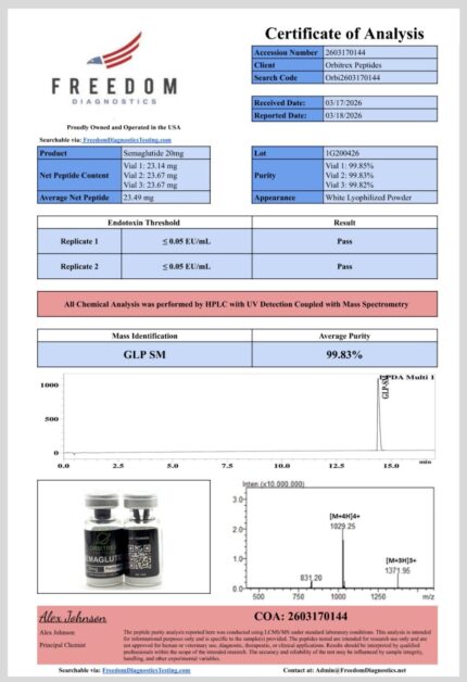 Backed by independent 3rd-Party Certificates of Analysis (COAs) and guaranteed 99%+ purity, this peptide provides unmatched confidence for researchers requiring precision in their studies.