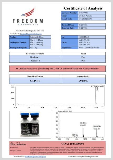 At Orbitrex Peptides, we pride ourselves on offering research peptides that embody quality, purity, and trust. Our 3G-RT 10mg is manufactured to meet the highest scientific standards, giving researchers a peptide they can rely on for consistent results.