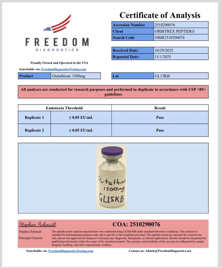 Maintaining consistent quality is essential in laboratory research. Glutathione 1500mg undergoes rigorous testing to ensure purity, stability, and reliability before it reaches the end user. Without these quality assurance measures, experimental data may become unreliable. Therefore, laboratories rely on suppliers that follow strict manufacturing and testing protocols. Orbitrex Peptide is known for providing high-quality research compounds that meet international standards, ensuring dependable performance for scientific applications.